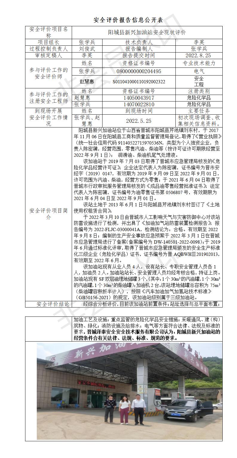 阳城县新兴加油站安全现状评价