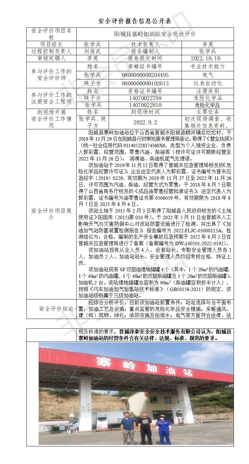 上一篇: 阳城县刘善体进加油站安全现状评价 下一篇: 阳城县亿瑞康石油有限公司(加油站)安全现状评价