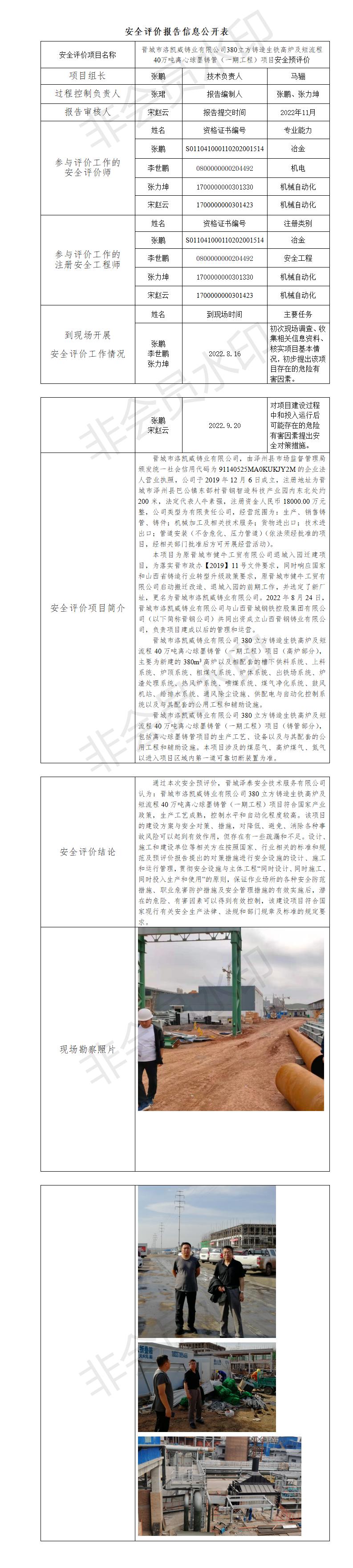 晋城市洛凯威铸业有限公司380立方铸造生铁高炉及短流程40万吨离心球墨铸管(一期工程)项目安全预评价