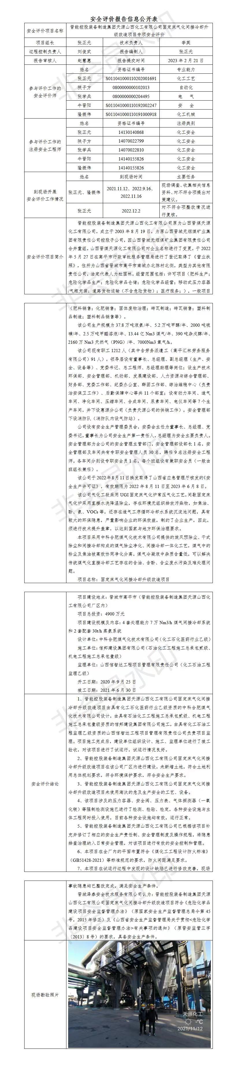 晋能控股装备制造集团天源山西化工有限公司固定床气化间接冷却升级改造项目专项安全评价