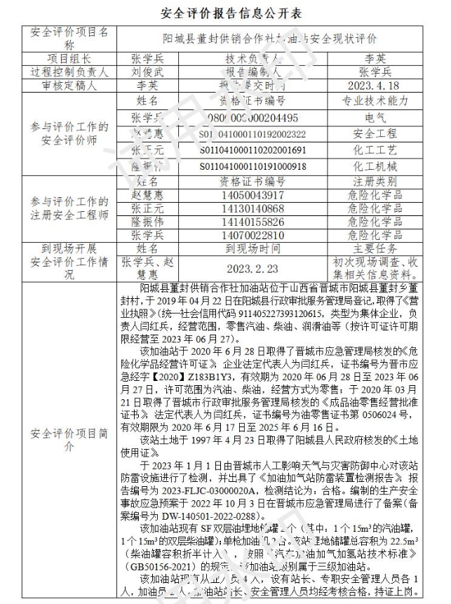 上一篇: 阳城县河北加油站安全现状评价 下一篇: 阳城县八甲口集运加油站
