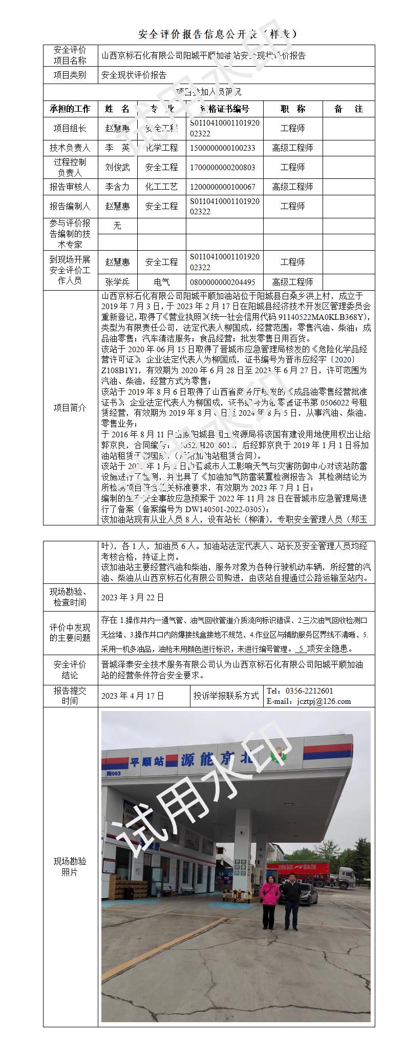 山西京标石化有限公司阳城平顺加油站安全现状评价报告