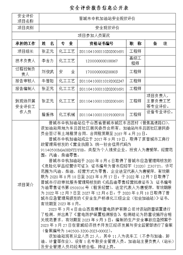 上一篇: 晋城市天浩清洁燃料有限公司金都加油站安全现状评价 下一篇: 泽州县来议加油站安全现状评价